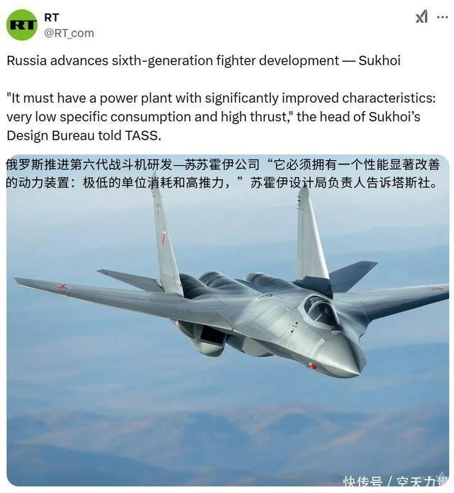 据俄媒报道,苏霍伊设计局确认正在推进六代机计划,特点在于动力系统极其出色,也基本符合俄罗斯战斗机的技术路线。